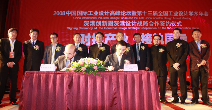 2008首届中国深圳国际工业设计节,同时也是中国国际工业设计论坛暨第十三届全国工业设计学术年会。由中国工业设计协会理事长朱焘、深圳市党组副书记刘应力、深圳市文化产业发展办公室主任郭永航、香港设计中心董事会主席罗仲荣、中国机械工程学会工业设计分会常务副理事长胡志勇、深圳市科协主席周路明、深圳市宝安区副区长王立新、深圳市工业设计行业协会创会会长刘志雄等启动深港创新圈深港设计战略合作,构筑了工业设计与国际化合作的平台。