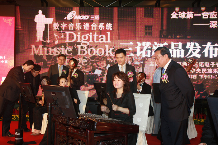 数字音乐谱台系统的出现将更加有效的推动乐谱电子文本格式的国家标准制定,大大有利于中国民乐的世界性推广,同时也将在中国民乐文化遗产的保护上起到重要的作用。在此基础上,我们也将推向音乐教育、家庭娱乐等领域,致力于实现这技术的规模化产业。中央民族乐团将率先使用这款代表行业最高应用技术水平的数字音乐谱台系统,在今天也是在第十届高交会上为大家奉献一场精彩纷呈的演出!同时也会全面展示三诺数字音乐谱台系统这一数字音乐高科技产品。