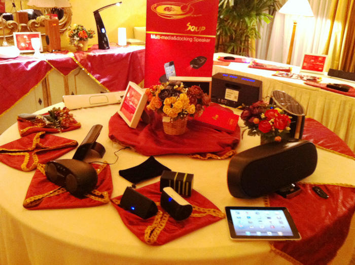 三诺在音频领域不断创新,展会上发布了新款智能无线音箱、多种应用形式的LED音箱及影音结合的智能音箱等,这些产品成为展会的一大亮点。如无线LED灯音箱,不仅可以通过iPhone无线播放音乐,还可提供闹钟、阅读照明等多种服务;蓝牙免提电话音箱BT2608,既可以通过蓝牙连接手机,进入免提通话模式,又可通过蓝牙自由播放手机音乐;蓝牙桌面ipad音箱I-2900可通过蓝牙无线播放平板电脑,笔记本电脑,智能手机中的音乐,并且可以将已下载在ipad中或者ipad在线获取的高清视频信号传输到电视机上播放,可谓便携、智能兼具。