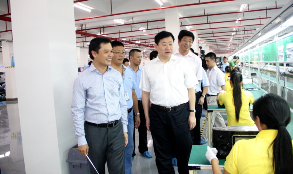 在三诺集团董事长刘志雄的陪同下,出席仪式的北海市政府领导及嘉宾参观了北海三诺高新科技园的生产车间。