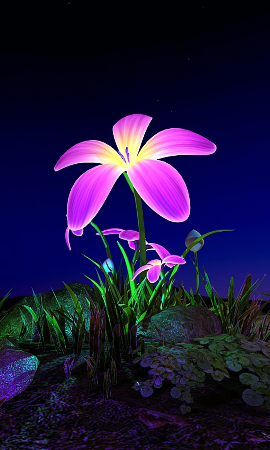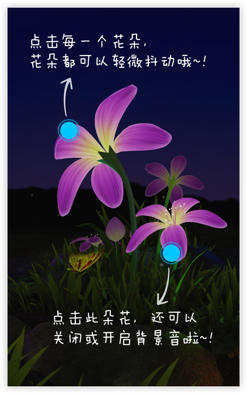 区别于传统的2D桌面,该款名为“紫蝶花”的壁纸不仅打造了业内罕见的炫目3D立体视觉画面,而且人机交互的体验式设计让壁纸瞬间“鲜活”,你点击壁纸,整体画面不仅可以360°自由旋转,而且画中一花一草皆能与你亲切“互动”,你只需轻触画面,即可体验虫鸣星稀、花影浮动、草湿荧光的动态绝美意境。