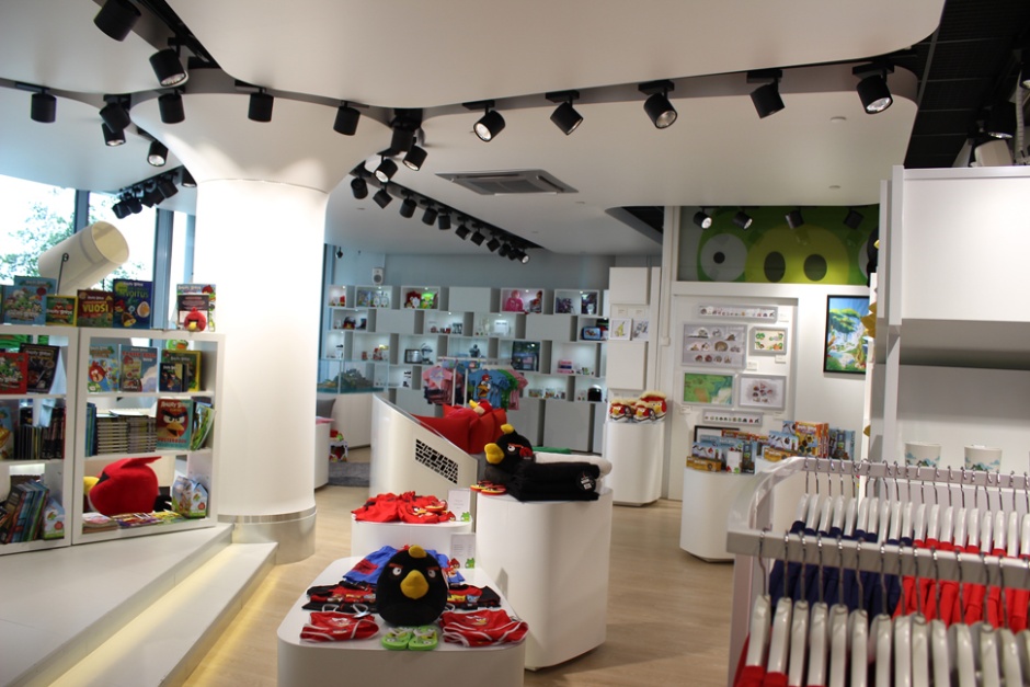 (图片2:芬兰ROVIO手机技术开发公司总部的“愤怒的小鸟”产品展示厅。)
