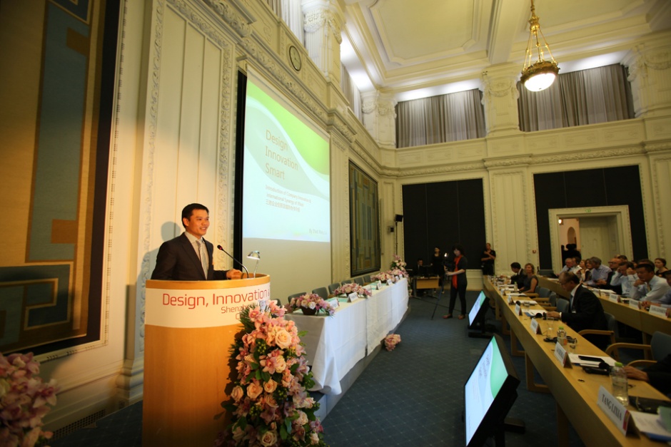 “在全球化日趋深入的今天,单一品牌、单一产品、单一渠道、单一市场,容易被冒仿、跟风,长此以往,企业将难以保持自己的核心竞争力。创新不能做标准化的单一产品,必须要走差异化竞争道路。工业设计是产品竞争中摧城拔寨的利器,是中小型企业发展创新最有利、最直接的利器。”在北欧之行第二站丹麦首都哥本哈根市庄严的国会大厦,三诺集团董事长刘志雄以“设计o创新o智慧”为主题发表了企业国际创新合作的演讲,他详细介绍了驱动三诺快速发展的两大引擎----设计创新与科技创新的发展历程以及相关创新产品案例,他认为,北欧设计是全球设计典范,更是北欧经济傲视全球的核心竞争力,与北欧设计强国合作,不仅能引进国际前沿的设计理念、尖端技术、人才创意,推动企业品牌国际市场的拓展,让更多的产品烙上越来越多的中国设计的印记,为产业升级及发展做贡献,而且中国本土的市场,制造,产业链资源的共享亦能向北欧高新科技产业提供服务及产业链支持,助推双方产业升级转型,实现共赢。刘志雄董事长向丹麦及北欧的合作伙伴发出诚挚的邀请,共同参与打造三诺大厦2030智慧生活创想馆,并希望能在创意、战略、市场、研发等方面与北欧乃至全球合作伙伴开展更多的国际合作。