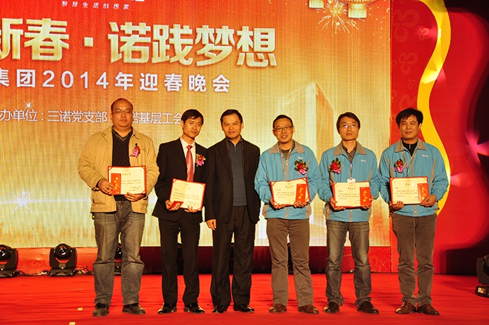 晚会特设了2013年度优秀三诺人及专案贡献表彰颁奖环节,三诺人拼搏奋进、锐意进取的精神感染了现场每一个人,刘董及集团领导为获奖者颁发了奖金及证书,获奖者代表与大家分享了获奖心得。