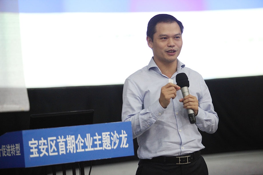 刘董从工业设计对企业竞争力提升的作用、三诺工业设计经验分享、对宝安区企业从“宝安制造”到“宝安创造”、“宝安设计”的转型升级建议等三个方面与现场企业家进行了热烈的互动。