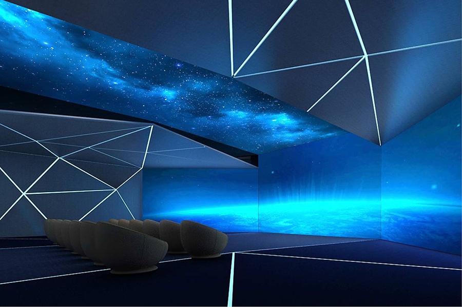嘉宾在智慧3D数字影音体验馆体验震撼的未来生活创想大片