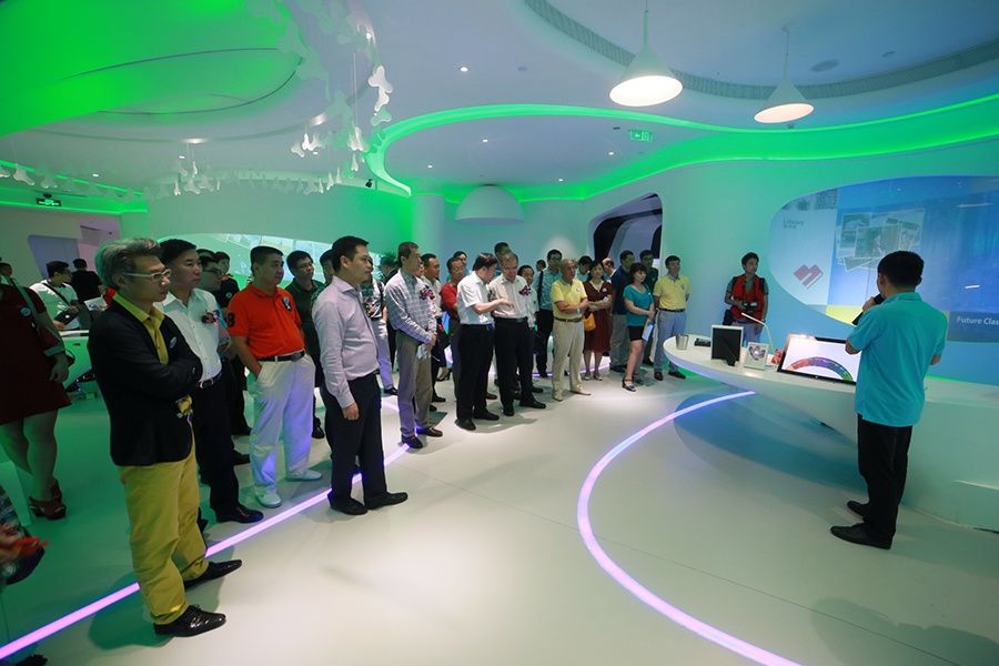 嘉宾们兴致勃勃地参观了以“智慧、创意、绿色”为主题定位的三诺智慧大厦。众位嘉宾被大厦的创意设计、智慧科技与人文气息深深吸引。