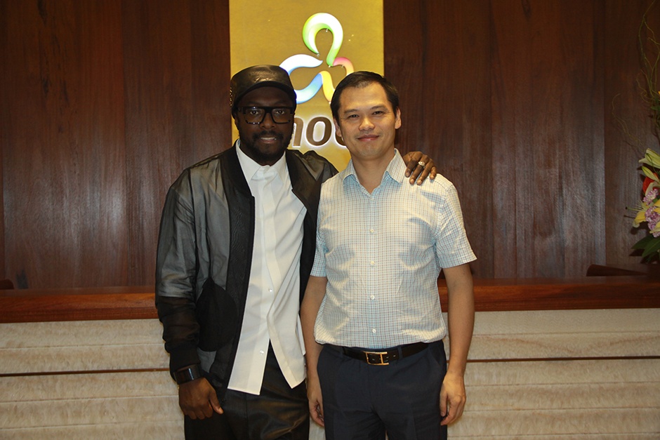 今年8月Will.i.am参观三诺智慧大厦与刘志雄董事长合影