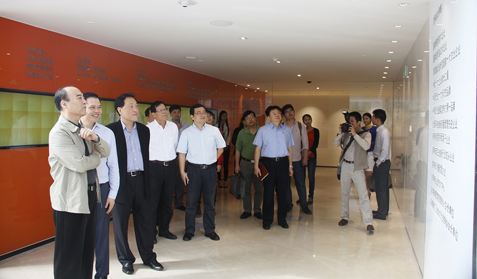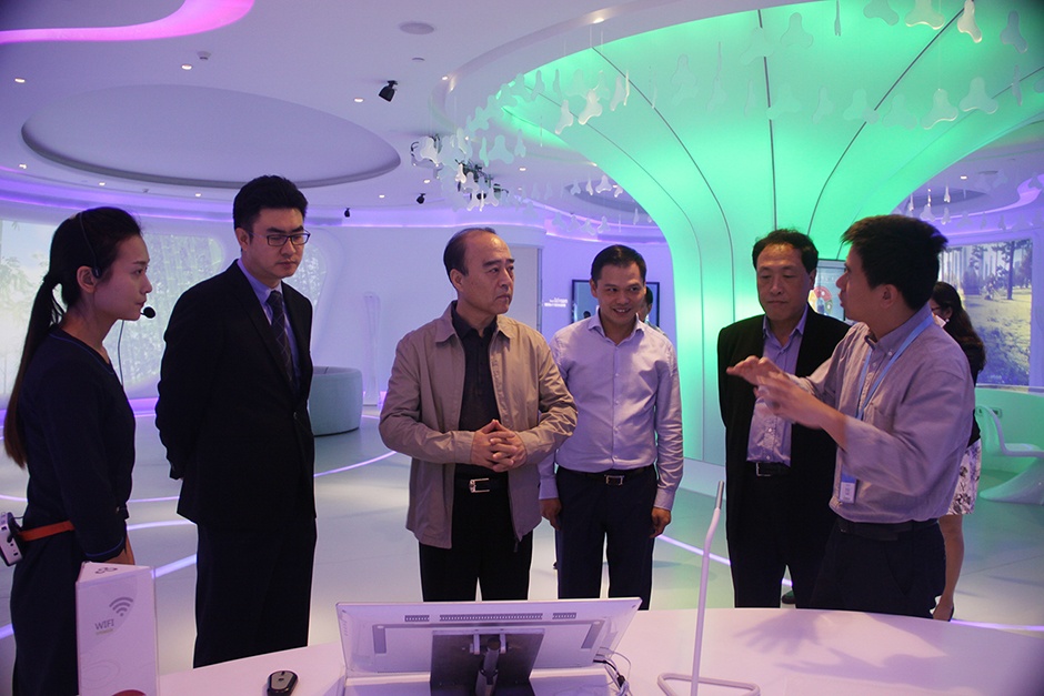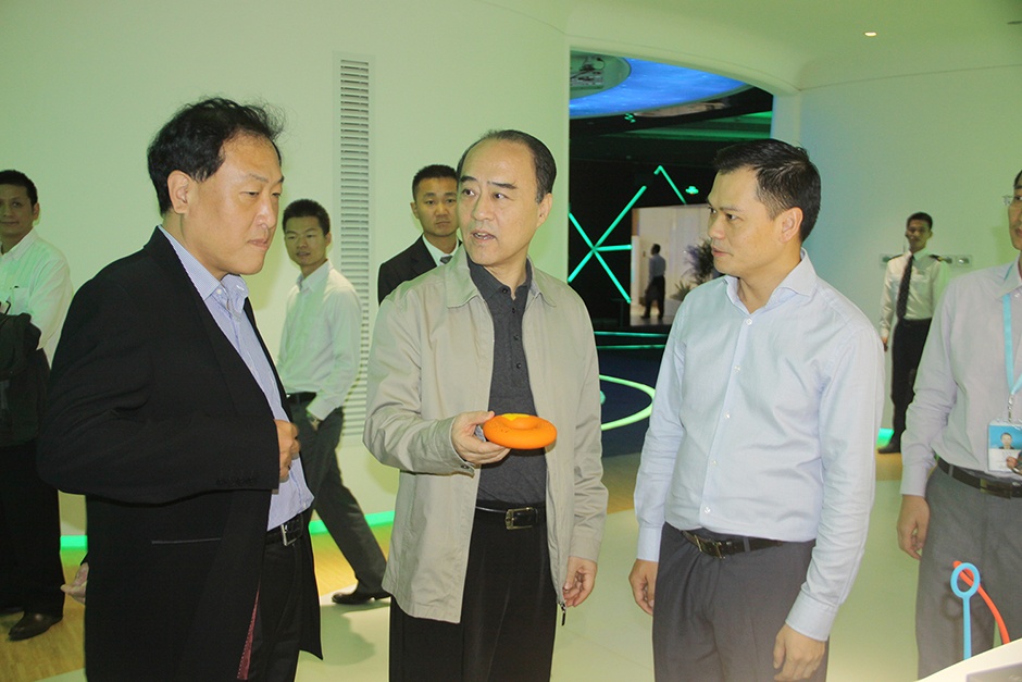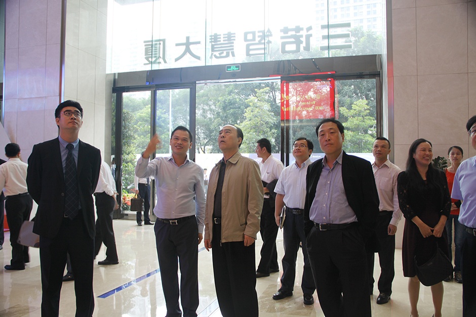 深圳市人大常委会主任白天、市经贸信息委主任郭立民等领导在刘志雄董事长的陪同下参观三诺智慧大厦智慧互动大厅