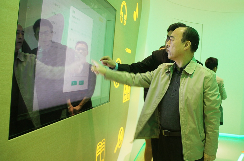 在“未来生活体验区”,领导们正在了解“智慧书房”的特点