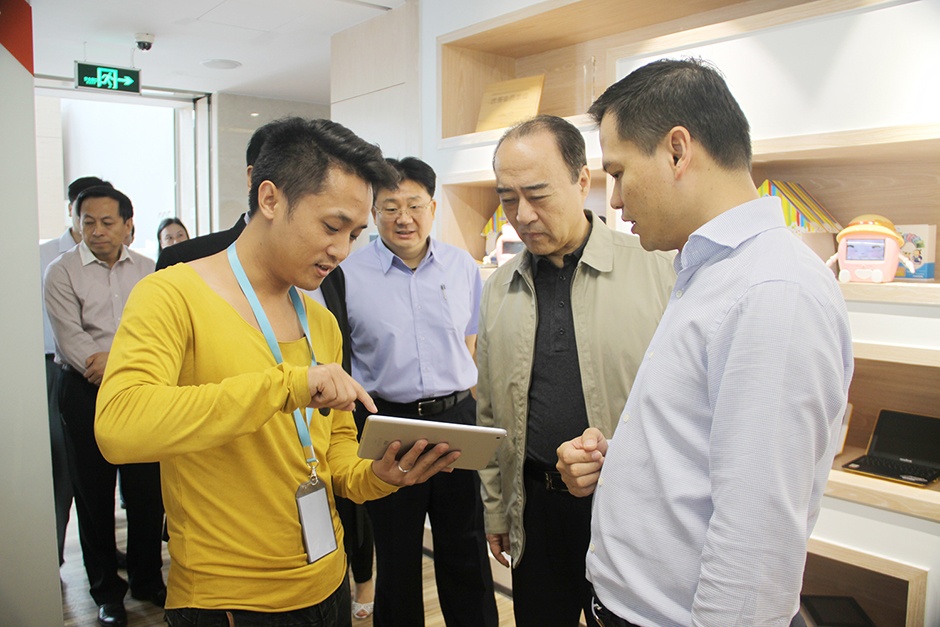 领导一行体验专为儿童研发的幼儿互教产品