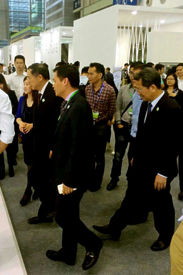 工业和信息化部党组成员、总工程师朱宏任,深圳市人大常委会主任白天,深圳市副市长陈彪在深圳市工业设计行业协会会长刘志雄先生、副会长兼秘书长封昌红女士的陪同下参观大展
