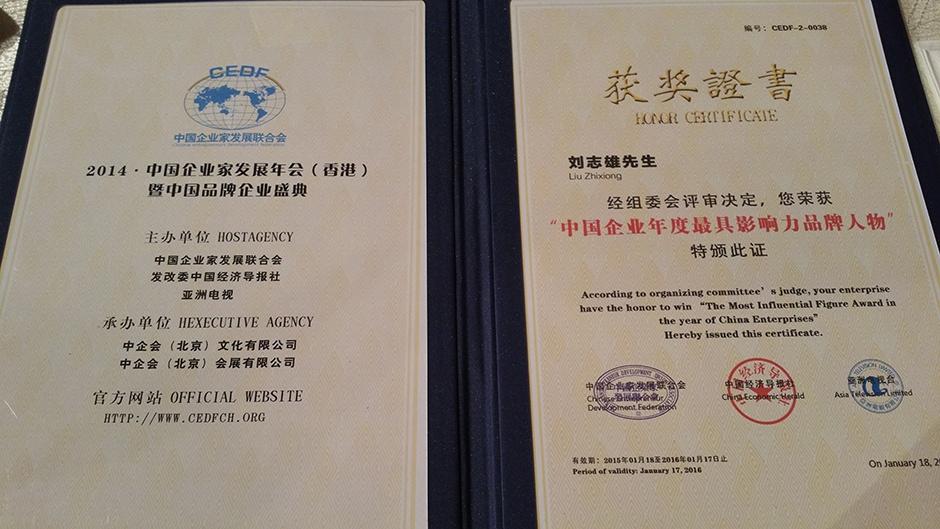 2015年1月18日,由中国企业家发展联合会、中国经济导报社、亚洲电视台联合主办的“中国企业家发展年会(香港)暨中国品牌企业盛典”在香港亚洲电视台演播大厅隆重举行,企业领袖、政府高官、专家学者、社会名流共聚一堂、共襄盛世。