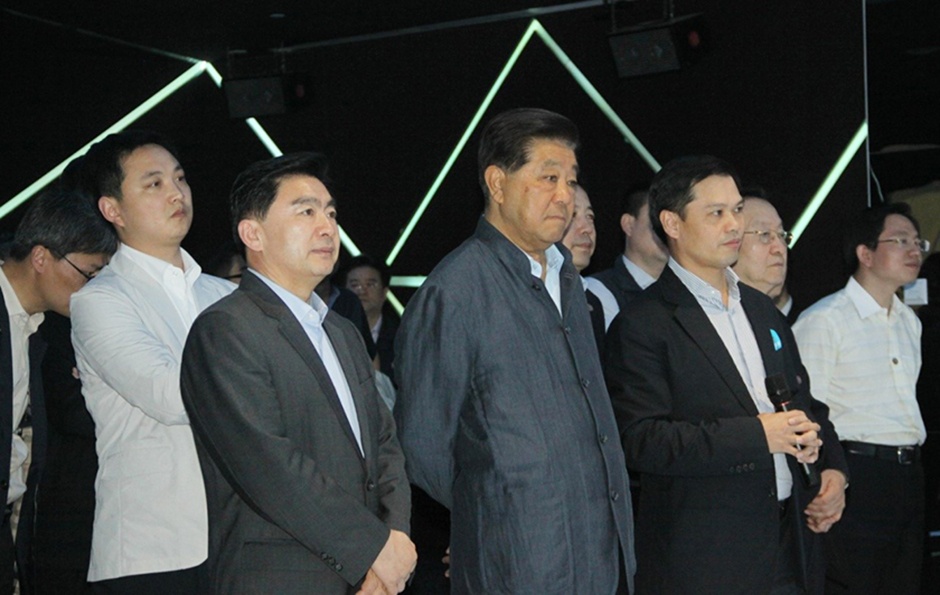 贾庆林、王荣一行在创想馆创客发布中心观看三诺介绍影片