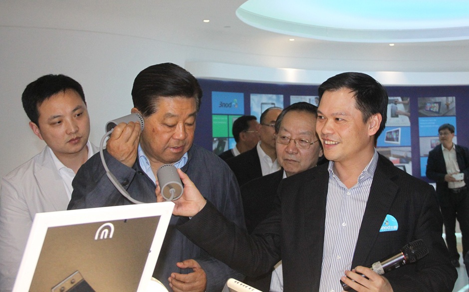 三诺集团董事长刘志雄首先向贾庆林等领导一行分享了三诺的成长历程以及创新驱动发展的感悟。刘志雄说,从只身独闯深圳,到如今产值百亿的产业集团,创新是促进三诺快速发展的重要原因。多年来,三诺始终坚持设计创新和技术创新作为公司发展的驱动力,并在全球首创OPM商业模式,为全球百多家品牌客户提供策划、设计、智造、市场一站式差异化、定制化整体解决方案,品牌位列亚洲品牌500强,三诺工业设计中心位列全球设计机构第13位。