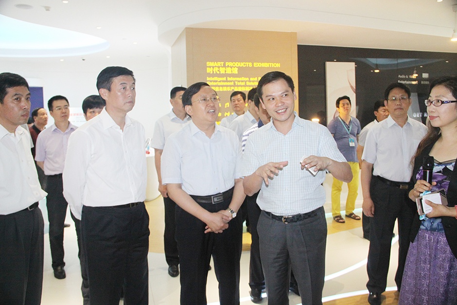6月24日,山东省东营市委书记、市人大常委会主任申长友,市委常委、秘书长李金昆,市委常委、常务副市长田青云等率领东营市各局委办主要负责人一行30多人,莅临三诺参观考察。在深圳市委常委、宝安区委书记田夫,三诺集团董事长刘志雄的陪同下,申书记一行参观了深圳智慧生活创想馆,并认真听取了刘志雄董事长关于三诺设计创新和技术创新的介绍。