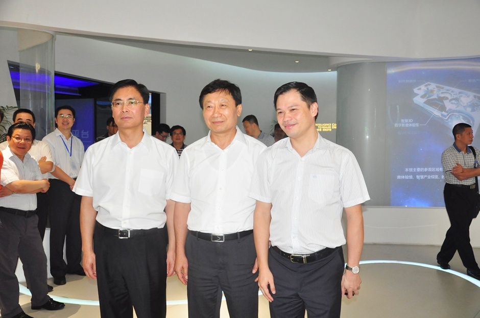国土资源部党组成员、国家土地专职副总督察、总规划师严之尧,深圳市市委常委杨洪及三诺集团董事长刘志雄合影留念