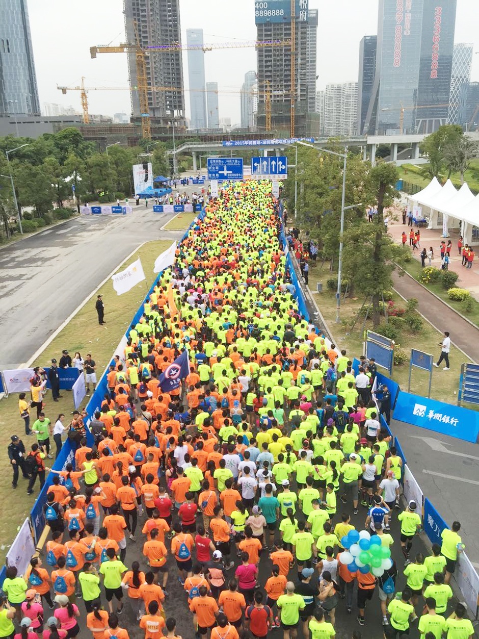 2015深圳南山半程马拉松在2015年11月1日上午七时三十分正式开跑。本次马拉松是由中国田径协会和深圳市南山区人民政府共同主办的南山区最大规模的路跑赛事,吸引了来自国内外的15000名马拉松爱好者参与。在众多的参赛者中,最亮眼、最有特色的跑团群体是由三诺集团率领的“创客百团摇滚跑”方阵,汇集了来自数十家科技企业和创业公司的创客团体,共计2000人参赛。