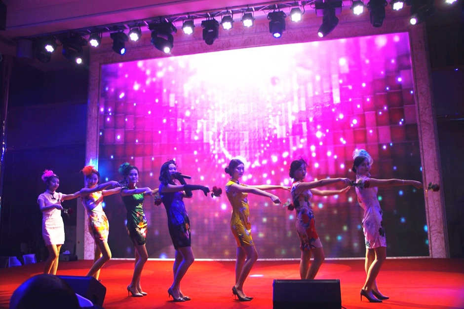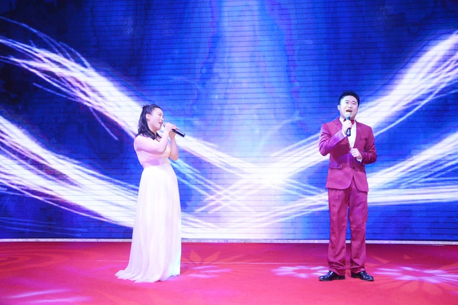 总部帅哥美女带来一曲老上海风情歌《玫瑰,玫瑰,我爱你》,玫瑰的花香和美酒的气息荡漾在这个吉祥的日子