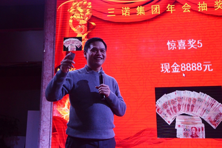 荣誉伴随着付出,盛典透显出激情。春晚伊始,三诺集团董事长刘志雄新年致词。他对一直以来关心支持三诺的朋友、合作伙伴,以及为三诺倾情付出的三诺同仁及其家人,表示衷心的感谢和美好的祝福。