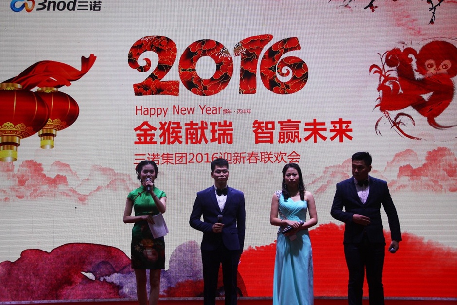 帅气、靓丽的四位主持开启了本次精彩的三诺春晚