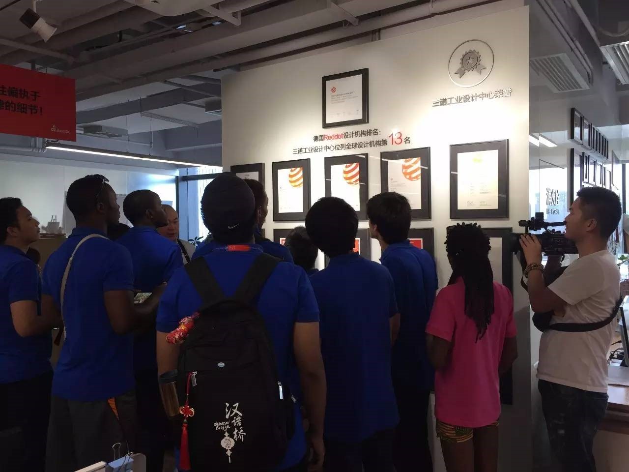 7月27日上午,《汉语桥》三十强选手再次走进三诺,参观三诺工业设计中心。在设计中心品牌总监阴鹏的带领下,选手们拾阶而上,一步步走入设计殿堂,感受工业设计的强大魅力。