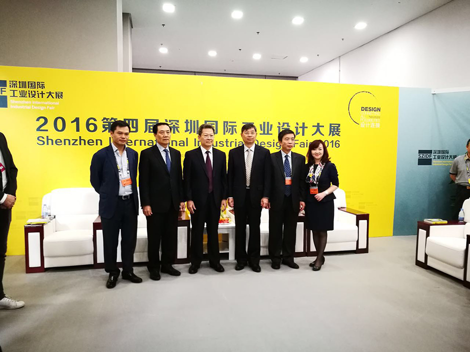 深圳市工业设计行业协会会长、三诺集团董事长刘志雄出席2016深圳国际工业设计大展启动仪式,并与深圳市副市长陈彪等领导合影