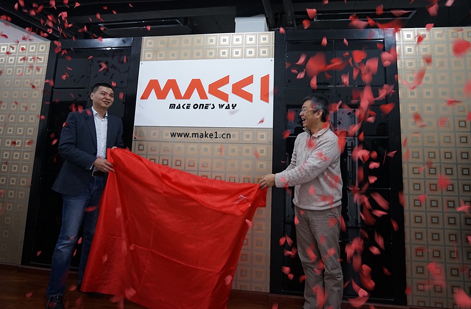 三诺副总裁Steven (右)和 MAKE1总经理 Archer (左)为MAKE1揭牌