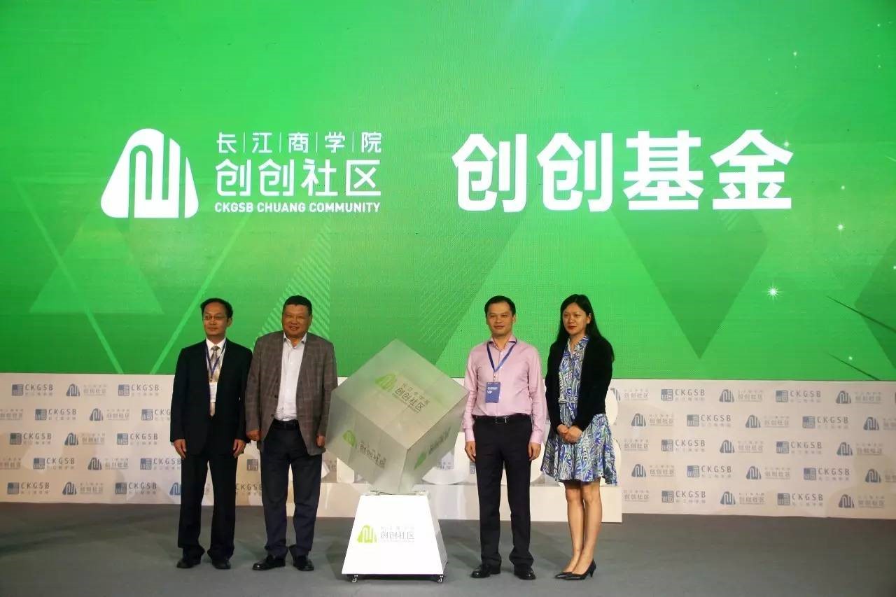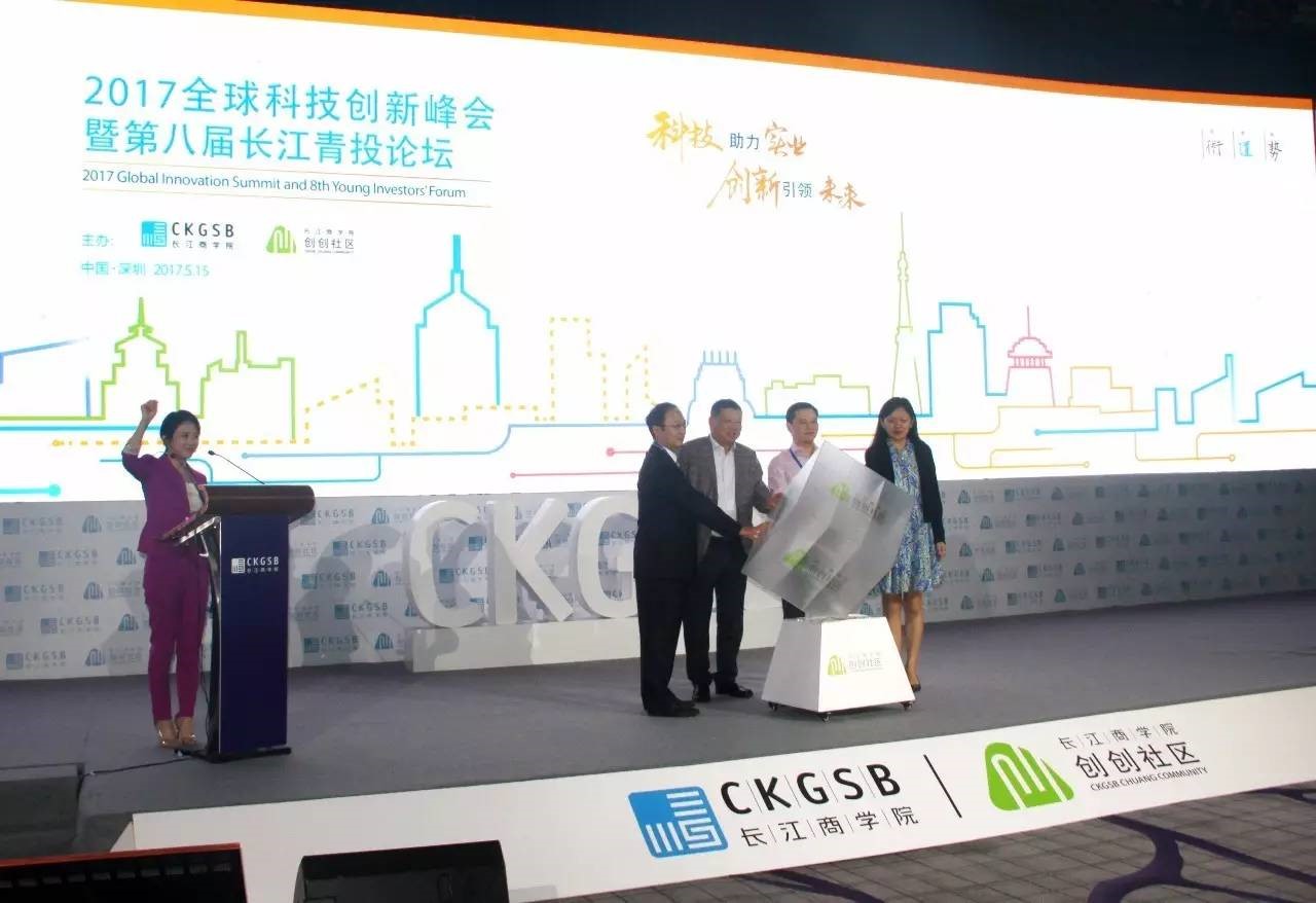 在2017全球科技创新峰会暨第八届长江青投论坛上,长江商学院创办院长项兵,长江商学院教授、长江创创社区学术主任张维宁,三诺集团董事长兼CEO、长江商学院深圳校友会会长、长江商学院DBA同学刘志雄和长江创创社区执行主任刘育共同启动了创创基金。