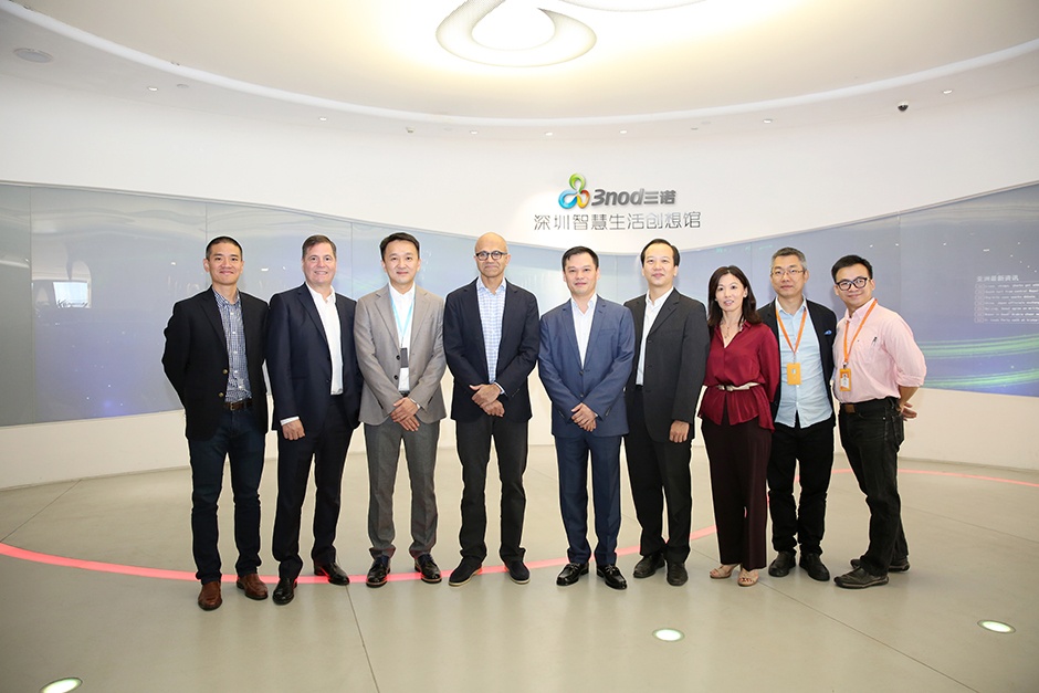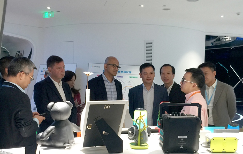 11月2日,微软CEO萨提亚?纳德拉一行(微软公司资深副总裁、微软大中华区董事长兼首席执行官柯睿杰,副总裁Peter Han,CEO办公室公关主管Caitlin McCabe,ODM销售团队总监 Cindy Wu)在集团董事长刘志雄的陪同下参观了由深圳市科创委和三诺集团联手打造的深圳智慧生活创想馆。