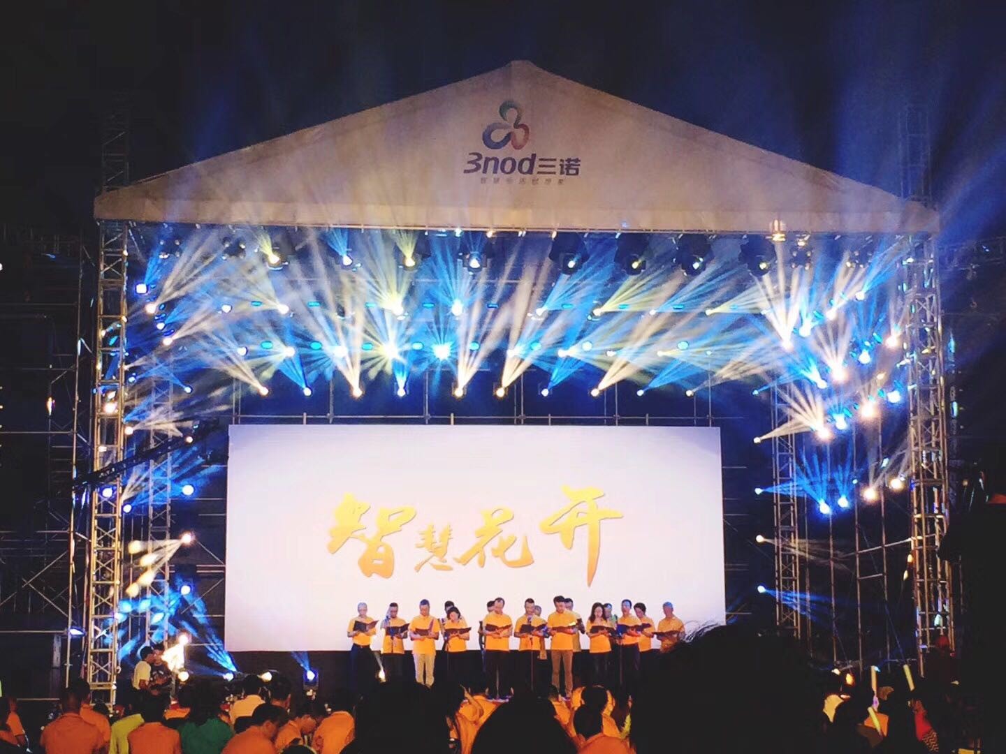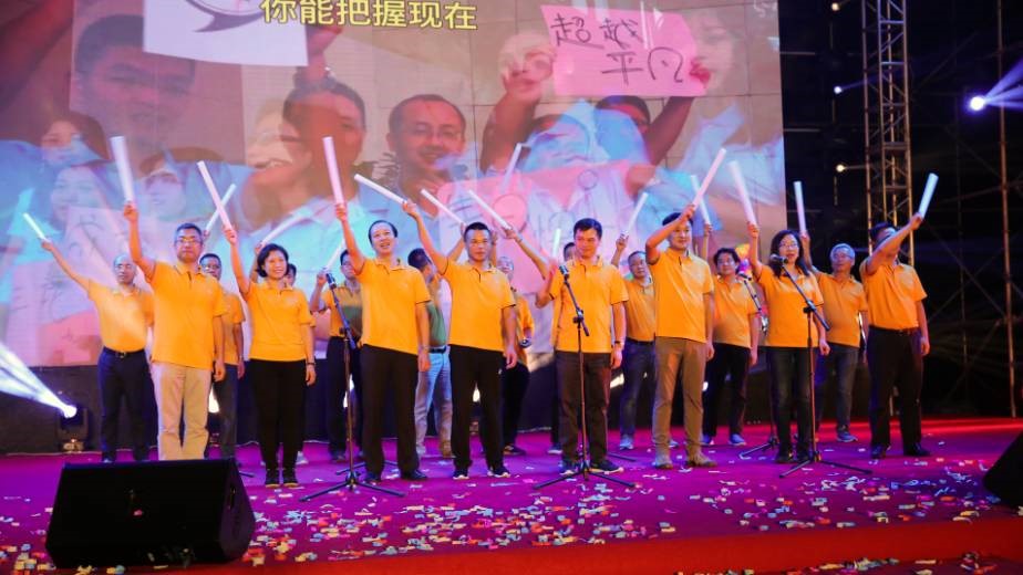 三诺员工深情合唱旋律优美、慷慨激昂的企业歌《智慧花开》,引起在座所有三诺人的深深共鸣。
