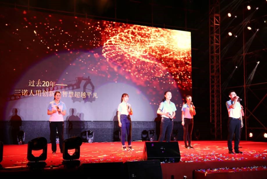 高管们激情澎湃,为三诺献上生日诗《迈进元年迈向下一个20年》。随后,在优美而熟悉的旋律声中,现场所有人齐唱三诺企业歌《智慧花开》,将晚会气氛推向最高潮。