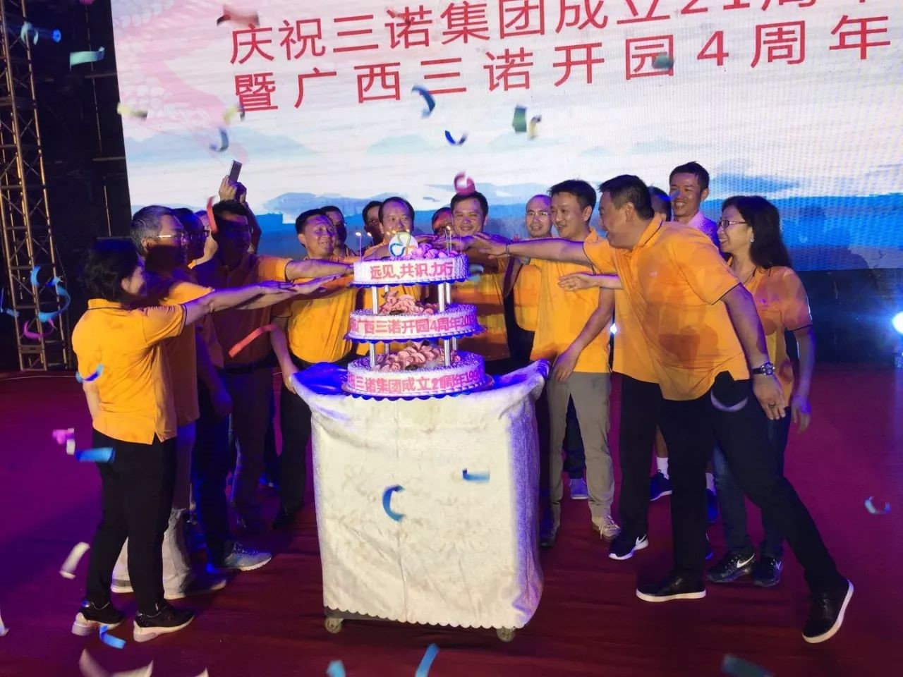 21岁的三诺风华正茂、意气焕发,开园4周年的广西三诺节节攀高、屡创佳绩。刘董和公司高管齐齐上台切蛋糕,为三诺打 CALL,祝福三诺的明天更美好。