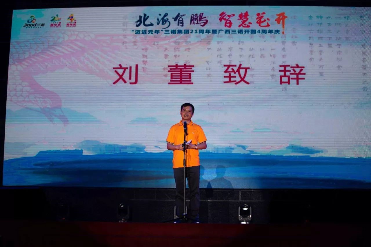 晚会上,刘董发表致辞,他鼓励员工:三诺的成绩就是你们的成绩,三诺的光荣就是你们的光荣!未来已来,脚下的征途、肩上的责任,考验着我们。我们要用坚定的脚步去丈量梦想的深远,去翻越前方更高的山峰。