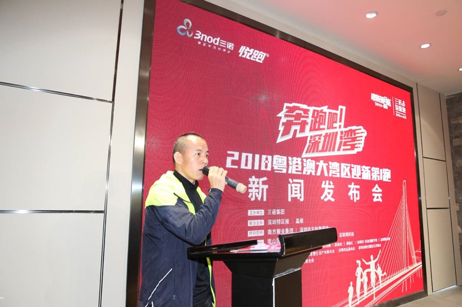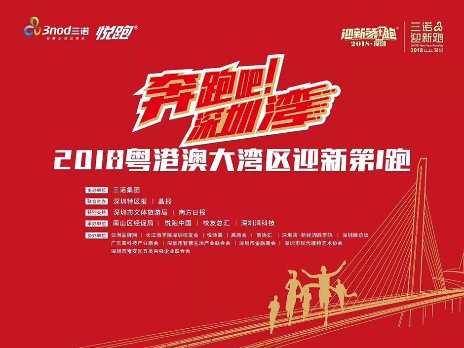 12月21日,“奔跑吧!深圳湾----2018粤港澳大湾区迎新第1跑”新闻发布会在三诺智慧大厦召开。会上隆重宣布,2018年1月1日早上8点18分,由三诺集团主办,深圳特区报、晶报联合主办,深圳市文体旅游局、南方日报特别支持,深圳市南山区经济促进局、悦跑中国、校友总汇、深圳湾科技承办的“2018粤港澳大湾区迎新第1跑”将在深圳湾运动公园热力开跑!届时将有来自粤港澳大湾区的100家商协会、校友会会长领跑,近千名粤港澳三地知名企业家,社会名达、创业领袖倾情参与,大家欢聚深圳湾,向大海许愿,向新年祈福,为大湾区时代的到来而奔跑和欢呼!