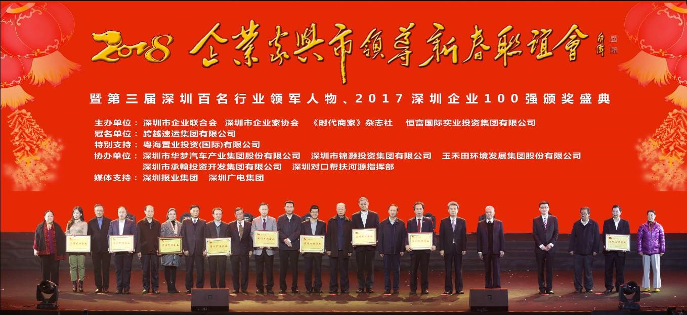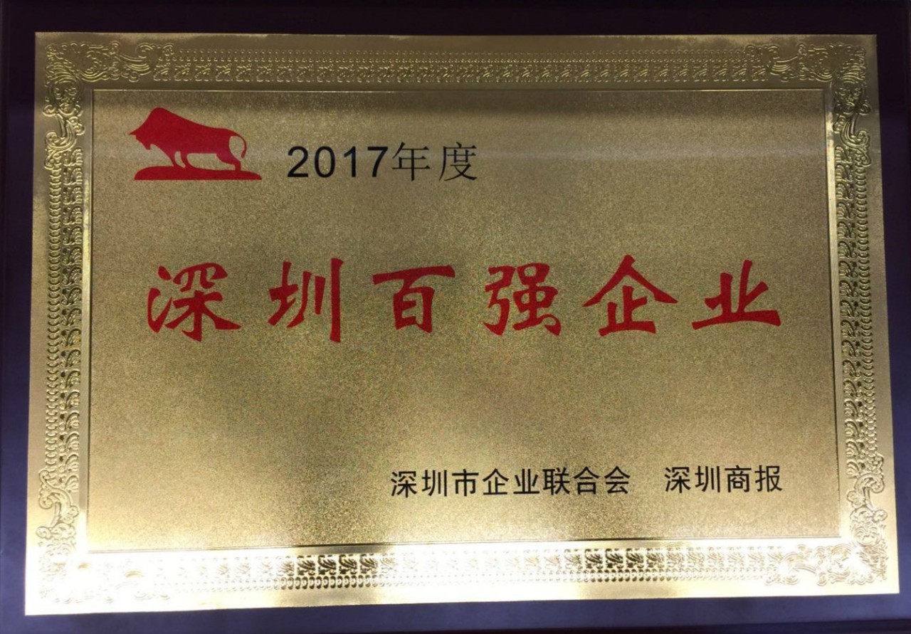 在中国企业联合会、广东省企业联合会、深圳市政府相关职能部门和有关专家的支持下, 经过调研和数据审核,评委会确定了“2017深圳企业100强”入围名单,最终上榜的企业在“2018企业家与市领导新春联谊会暨2017深圳企业100强颁奖盛典”上受颁“2017年度深圳百强企业”荣誉称号。