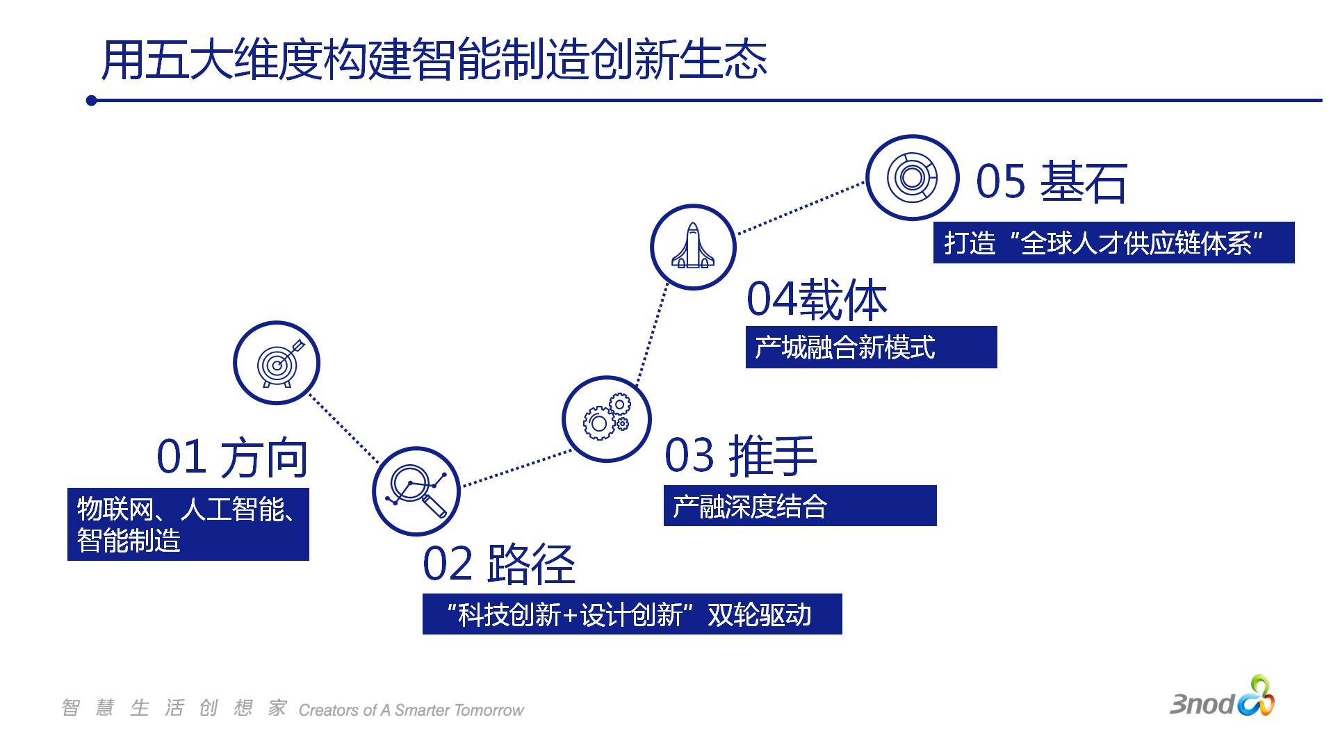 刘志雄指出,当前是一个变革发展的时代,更是一个智权的时代,赢智权者赢天下。全球智能制造、物联网、人工智能等新兴产业正在发生科技变革,产业发展的时代已经逐渐从“网权”时代向以人工智能核心技术为主导的“智权”时代转变。风口已来,那么如何在AI大时代构建智能制造创新生态呢?刘志雄认为要从方向(物联网、人工智能、智能制造),路径(“科技创新+设计创新”双轮驱动),推手(产融深度结合),载体(产城融合新模式),基石(打造“全球人才供应链体系” )这五大维度发力。