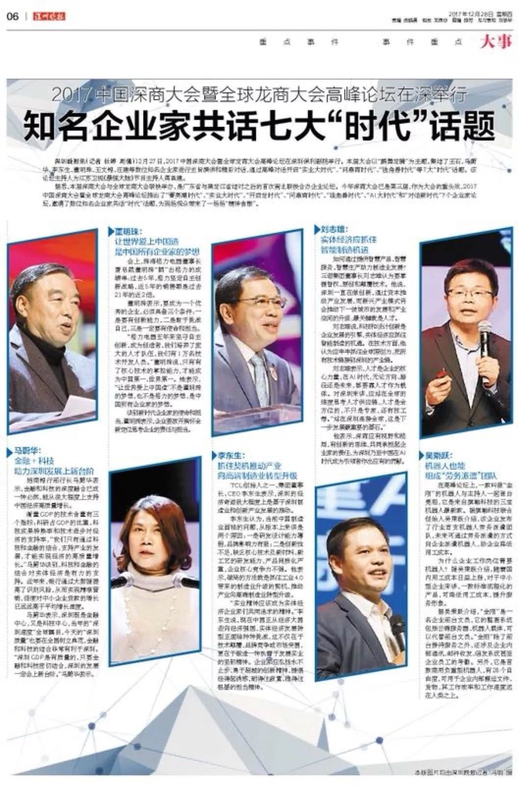 董明珠、刘志雄、马蔚华、李东生、吴乘跃等知名企业家共话七大“时代”话题