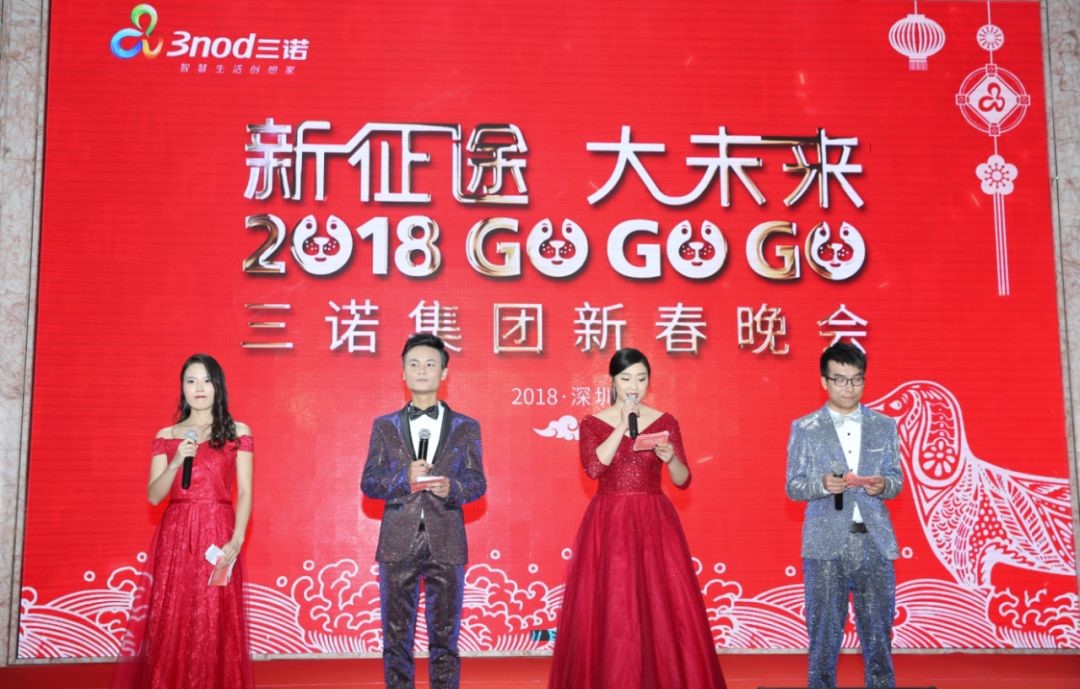 1月27日晚,三诺大厦5楼智慧大厅灯火辉煌,热闹非凡,处处洋溢着喜庆的节日气氛。三诺人欢聚一堂,共话发展,喜迎新春。在一片欢歌笑语中,三诺集团“新征途 大未来 2018 GO GO GO!”迎春联欢会盛大启幕。
