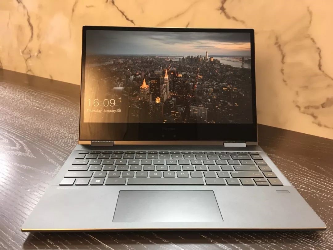 这款超薄360度旋转笔记本目前还是一款概念产品,采用三面窄边框设计,金属外壳质感加上酷炫的钻切,更特别的是,钻切边经过阳极处理产生的金边效果,更显高贵和品位。