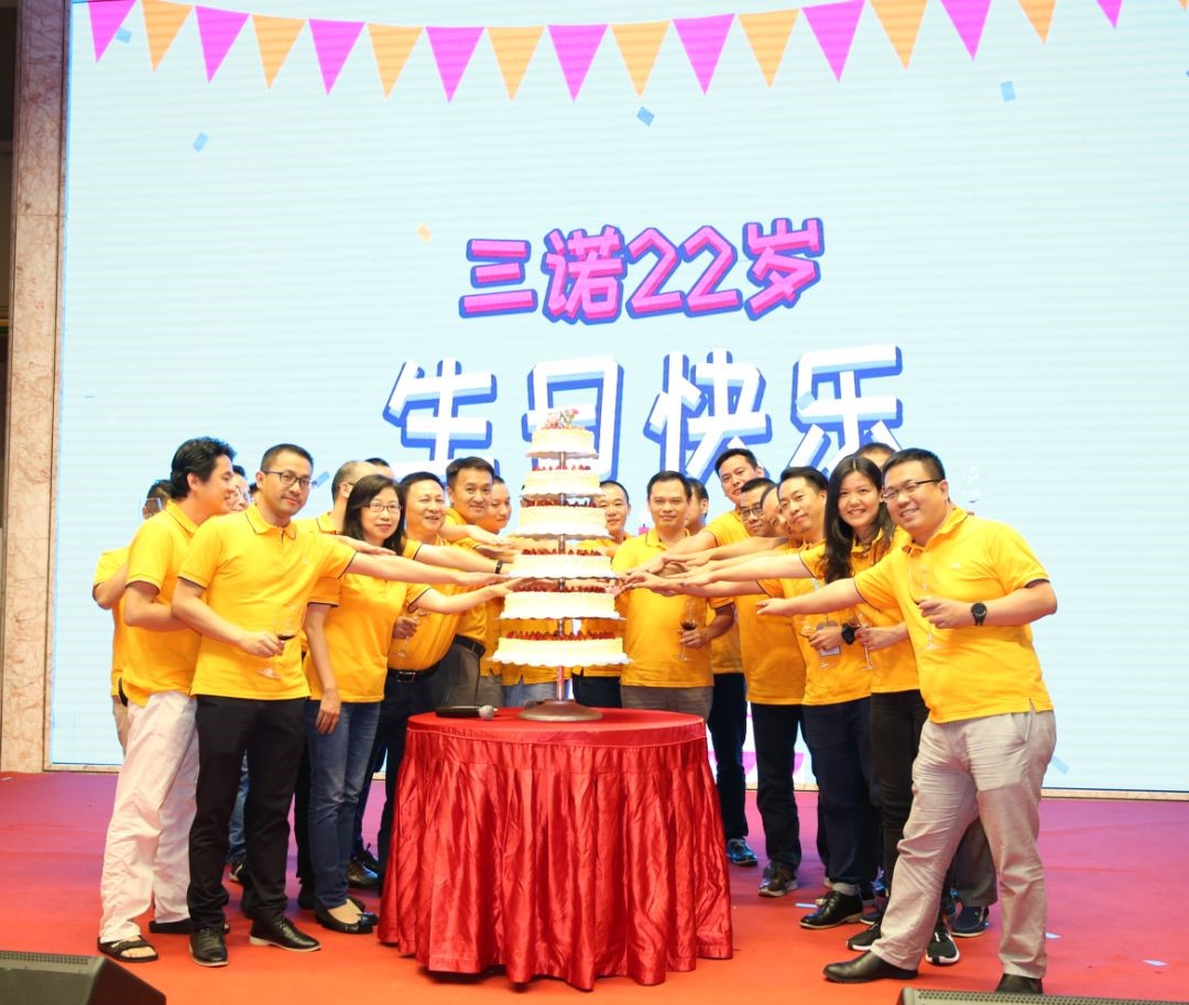 22岁的三诺风华正茂、意气焕发。最后,刘董和公司高管一起上台切蛋糕,为三诺打 CALL,祝福三诺的明天更美好。