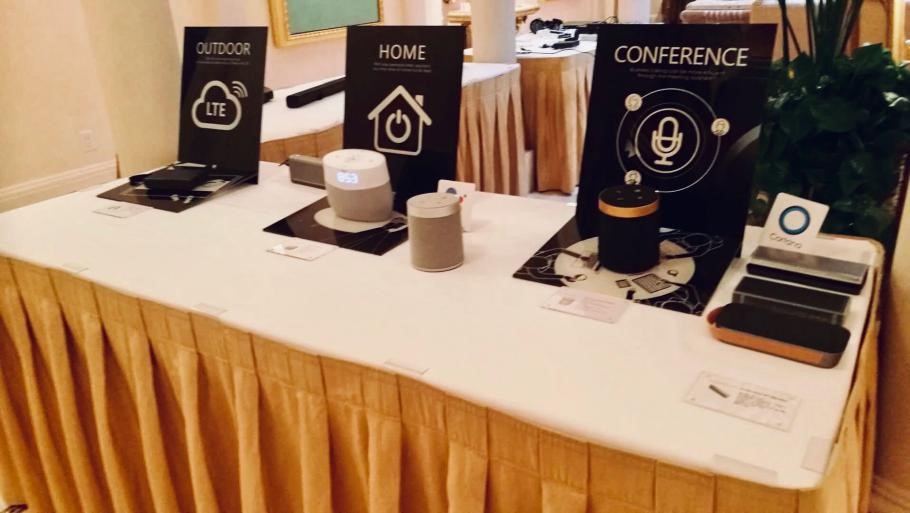 智能音箱展台同样精彩。LTE会议音箱突破了室内场景的限制,能让用户随时随地拥有高质量的商务会谈。因为有LTE网络的支持,会议不再依赖Wi-Fi或网线。这款会议音箱搭载的是微软AI云服务,其中的功能还包括实时文本记录和中英文翻译。