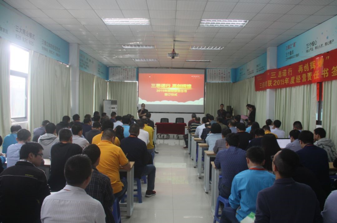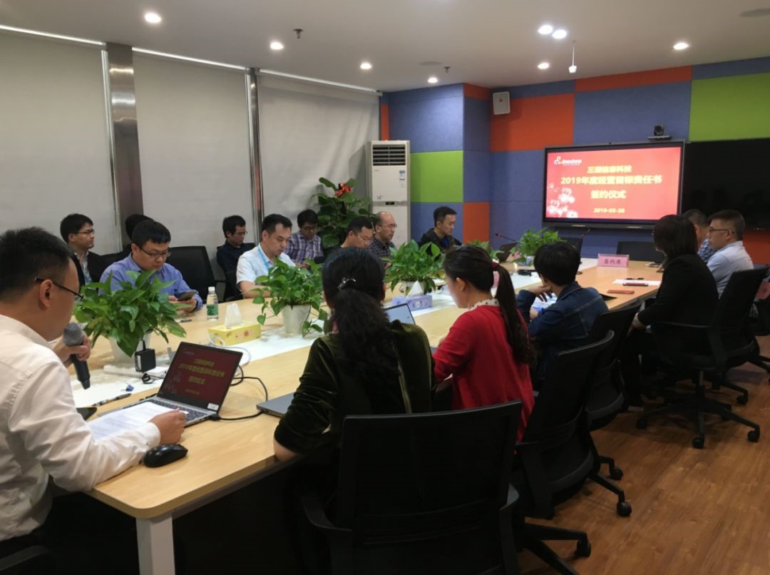 三诺声智联执行总经理张文锋作了动员讲话,“签订经营责任书,代表的是全体管理干部未来一年对董事会、对全体员工的一种承诺,我们要说到做到。”张文锋表示,声智联在变革的路上做了大量工作,从岗位职级重新梳理、定编定岗、倡导绩效文化、形成共识的绩效机制、推进绩效管理的制度落地,到声智联整体经营责任书签订,各中心/部门的经营责任书签订、个人的KPI责任签订,我们始终在贯彻和落地一件事情:建立信任感。通过这种信任激活组织的每一个人服务客户的信心、愿望和行为,从而凝聚共识、不畏挑战、形成强大战斗力,推动声智联高速发展!