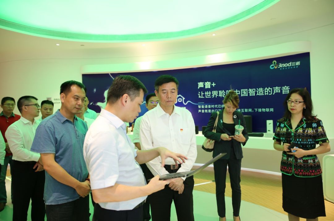 调研团一行参观了深圳智慧生活创想馆,了解了三诺的整体产业布局、设计创新战略优势和智能智造平台能力,并体验了AI智能屏音箱、智能支付、智能穿戴、智慧终端、智慧教育等三诺各种场景化智能产品。