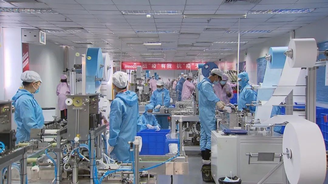口罩生产车间机器轰鸣,三诺人在紧张忙碌中