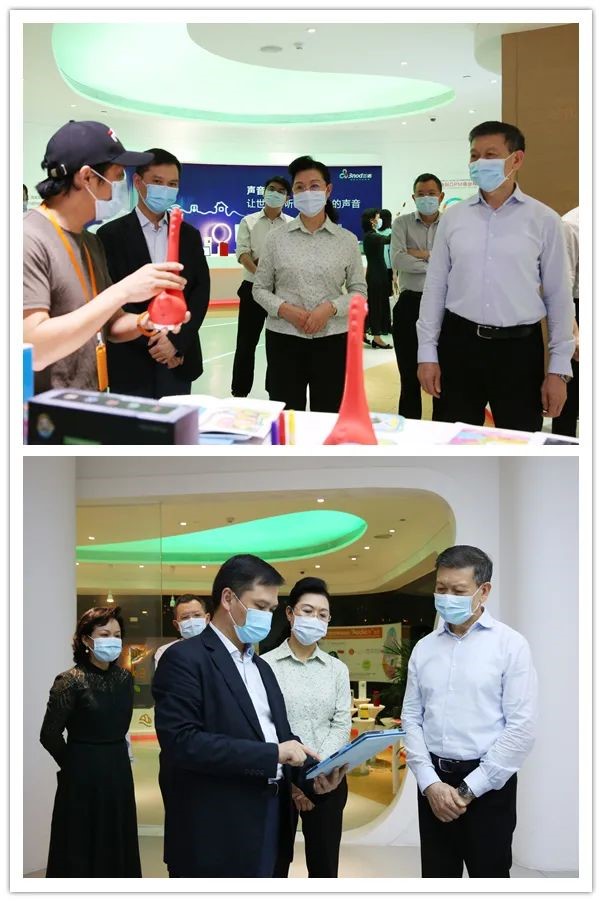 刘志雄董事长(右一)向林洁书记(左一)介绍三诺“声音++”产业链