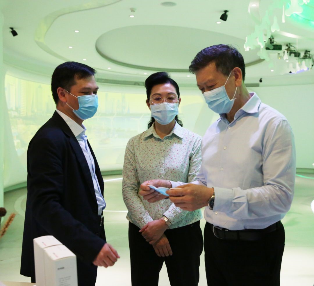 领导一行视察三诺紧急投产的口罩、额温枪等防疫产品展区,并给予高度评价