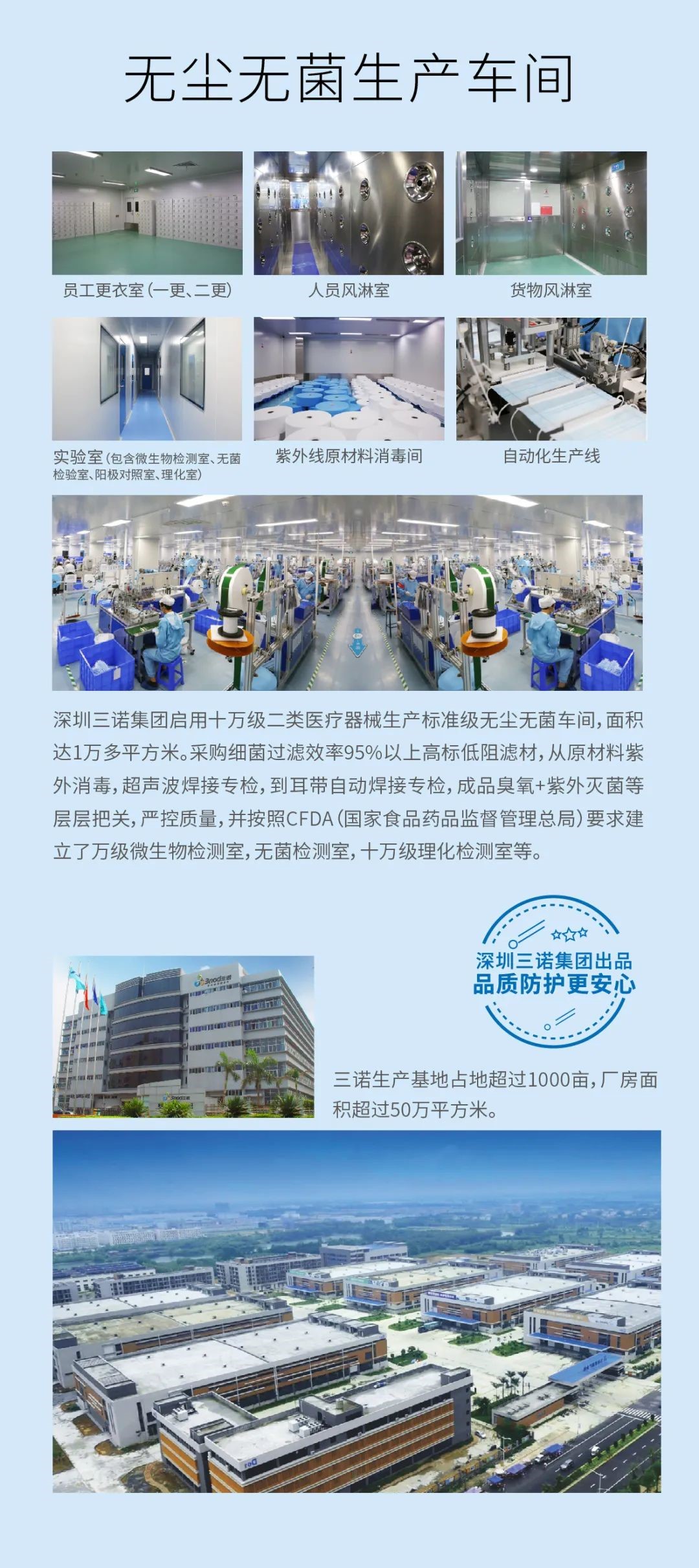 深圳三诺集团在投产了口罩等防疫产品生产线后,同步启动了资质认证工作,并且在厂房建设、生产流程、产品品质检测等方面的要求,严格按照甚至超过行业标准来实施,最终成功获得医用级别口罩的生产销售和出口资质。