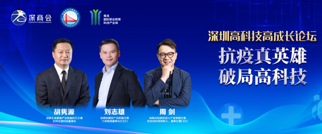 面对疫情,人工智能、大数据、可穿戴设备等高新技术在病毒溯源、对症药物、疾病预防、疫苗研制、重症救治等方面发挥出了关键作用,充分展现了深圳科技防疫的“硬核”和力量。在“抗疫真英雄,破局高科技”论坛中,深商投融资产业联盟主席、三诺集团董事长刘志雄,深商AI智能机器人产业联盟主席、优必选科技创始人、董事长兼CEO周剑,深商生命健康产业联盟执行主席、北科生物科技董事长胡隽源,三位大咖集聚,共话科技抗“疫”高光时刻,在危机中育新机,于变局中开新局。