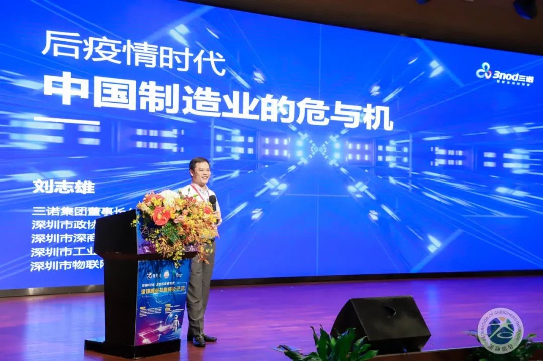 今年疫情发生后,三诺集团迅速行动、抗击疫情,转产造口罩,上演“深圳速度”。主题分享中,刘志雄介绍了三诺面对疫情的应对策略:在新的商业模式上,坚持独创的OPM模式,做全球“智造者”;在新的产业领域上,构建智慧健康生态链;在新的市场方向上,打造国产化计算机智造产业平台;在新的制造体系上,建设数字化灯塔工厂;在新的园区形态上,布局东盟跨境产业园。